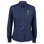 Opgrader din professionelle garderobe med denne skræddersyede damebluse. Fremstillet af en bomuldsblanding med en klassisk krave med knapper.
