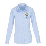 Denne langærmede skjorte med sildebensmønster i polyester og bomuld til damer fra Russell™ er perfekt til travle morgener. Den ser flatterende ud med sin skræddersyede pasform, og den diskrete vævning giver den et klassisk præg. Tilføj dit logo, og skab et gennemført look til din virksomhed.