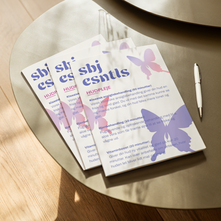 I skønhedsbranchen gør du alt, hvad du kan, for at få dine klienter og kunder til at føle sig godt tilpas og vise sig fra deres bedste side. Her hos Vista vil vi gerne gøre det samme for dig. Bliv inspireret af vores professionelt designede skabeloner, og skab dine egne personligt tilpassede markedsføringsmaterialer, emballage, reklame og meget andet. Uanset om du ejer en salon, spa, butik med skønhedsartikler eller arbejder freelance, har vi alt det, du skal bruge til at opbygge et succesfuldt brand. Føl dig godt tilpas og vis dig fra din bedste side ved møder, på messer, til events og i butikken.