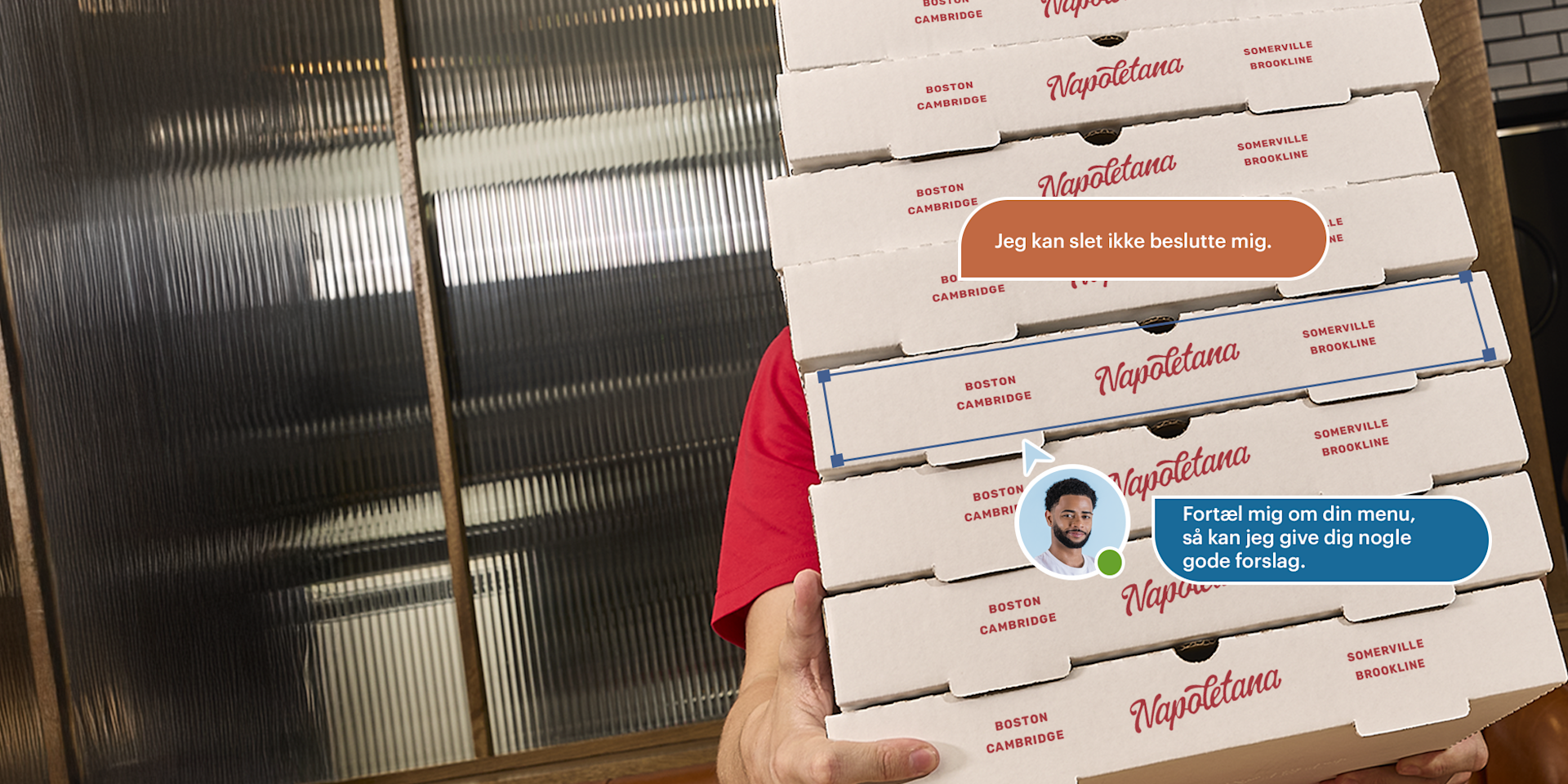 For at holde din service kørende kan du fylde op med bestikposer uden tryk, servietter, afstandsstykker og indpakningspapir. Hvis du har brug for hjælp til noget, lige fra valg af materialer til design af din emballage, står vores dygtige team altid klar til at hjælpe. Uanset om du er en restaurant, foodtruck, café eller en et leveringsfirma, gør VistaPrint det nemt at gøre hver eneste bestilling til en oplevelse, der er i tråd med dit brand og fyldt med glæde.