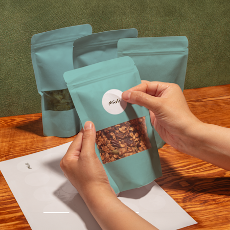 Man kommer langt med en etiket. Med trykte ark med etiketter kan du nemt tilføje branding, informationer og forretningsoplysninger til produkter, dokumenter og meget mere. Tilføj den slags detaljer, som kunderne elsker, som forsegling af gaveposer. Du kan også gøre bestillingerne unikke ved hjælp af specialdesignede etiketter på ark med dit logo. Eller hvorfor ikke lave en unik etiket til dit barns taske eller tøj i daginstitutionen eller på lejrskolen? Skal du sende fakturaer eller onlineordrer? Design etiketter på ark og visitkort, der passer til dit brand, så du får et sammenhængende look. Du kan få trykt etiketter på ark i mange forskellige former og størrelser, så de passer til dine behov.
