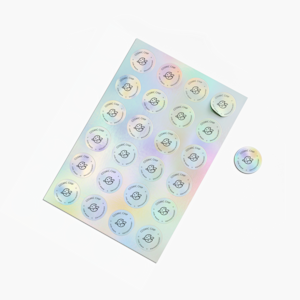 Skab et iøjnefaldende, sammenhængende look på tværs af emballage og kampagner med holografiske klistermærker på ark