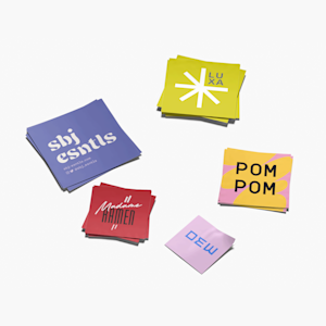 Vælg mellem 6 materialer, der passer til dit formål – herunder, hvid, gennemsigtig, holografisk og soft touch plastik for en holdbar, poleret finish eller bestrøget eller ubestrøget papir, der giver et mere naturligt udseende. Fås i 8 standardstørrelser eller specialmål, der passer til ethvert projekt.
