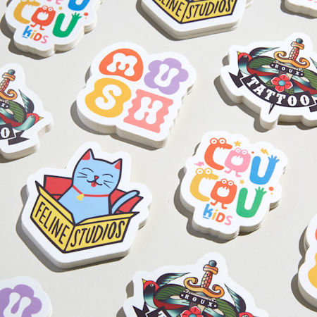 Specialdesignede klistermærker er en nem og budgetvenlig måde at promovere dit brand på og booste din markedsføring på overraskende måder. Lav enkeltvise klistermærker, som du kan dele ud til kunderne, eller etiketter på ruller, som du kan sætte på produktemballagen eller brande onlineordrer med.