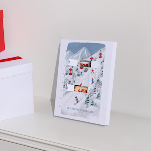 Vores adventskalendere har en forside, der kan tilpasses, og som er lavet af robust pap med 24 perforerede låger, der gemmer på chokolade indeni. Du har 7 forskellige chokoladevarianter at vælge imellem: Lindt® LINDOR-trøfler, Lindt LINDOR-minitrøfler, Mars Miniatures, Kinder® Chocolate Mini, Mika® Favourites, Toblerone® og vores ikke-brandede, massive mælkechokolade.