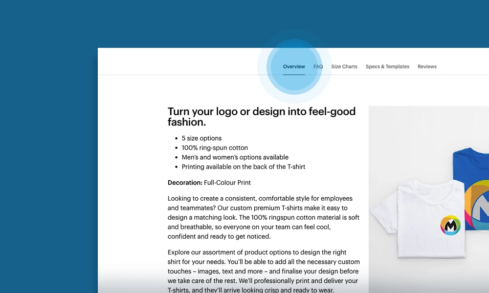 Produktsiderne ser anderledes ud, end de plejer. Vi har opdateret layoutet, for at det skal være nemmere og hurtigere for dig at finde det, du har brug for. Du vil se, at oplysninger som specifikationer, tilvalg, FAQ’er og anmeldelser er opdelt i sektioner, så du kan skifte mellem dem, uden at du skal rulle ned på siden. Derudover er alle de vigtige oplysninger om pris, tilgængelighed og tilvalg placeret øverst, så du kan koncentrere dig om at komme i gang med designet.