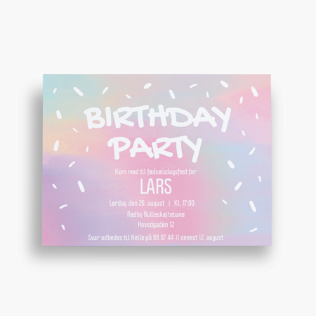 Der er mange sjove og samtidig enkle måder at pynte dine invitationer på. Begynd med at vælge en iøjnefaldende skabelon, som matcher temaet for din fest. Derefter kan du tilføje en masse kreative detaljer – når du tilpasser din invitation, kan du gå på opdagelse i vores store udvalg af farver eller dekorere dit kort med guldfolie eller vælge afrundede hjørner.