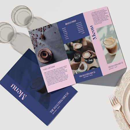 Start med at vælge den perfekte størrelse, foldestil og papirtype til dine menukort. Upload derefter dit design, eller udforsk vores galleri med skabeloner, der er skræddersyet til din branche. Tilpas dine menukort med flotte billeder, logo og unik branding, så de skiller sig ud.