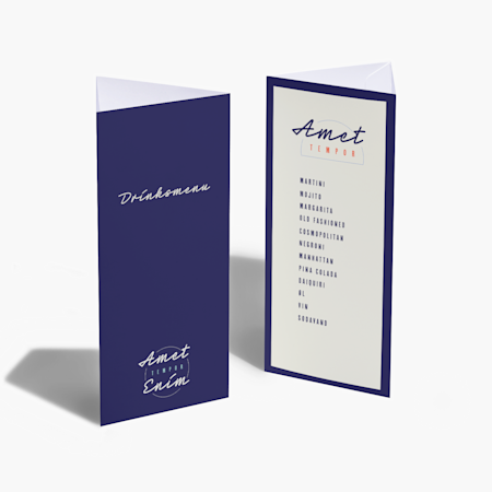 Du kan vælge mellem flade menukort og menukort med midterfals, tre sider eller Z-fals, så det passer til dine behov i forhold til indhold og præsentation. De forskellige modeller har hver deres unikke designmuligheder.
