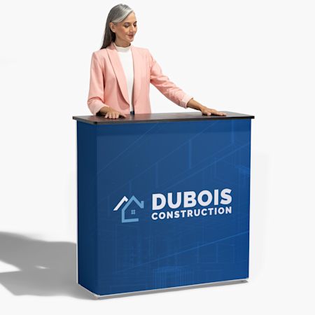 - Hurtig opsætning med udtrækkelige bannere, bordduge og skiltning
