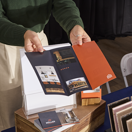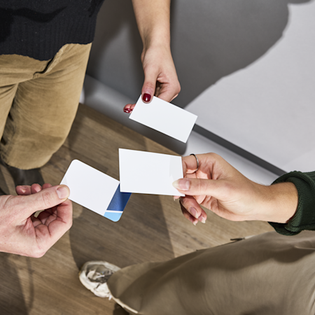 Vi ved, at forberedelserne til messer kan føles som at jonglere med tusind ting på én gang, så vi har gjort det nemt at handle. Brug vores gratis designskabeloner og kom hurtigt i gang, eller upload dit eget design for at få et fuldt tilpasset look. Vælg produkter, antal og ønsket leveringshastighed – hurtig, standard eller Economy. VistaPrint tager sig af resten med professionel trykning og levering af dine messeprodukter direkte til din dør. Takket være kvalitetsmaterialer, der holder event efter event, og leveringstider helt ned til 3 hverdage kan du gå ind i udstillingshallen – helt klar til at skabe de rigtige kontakter.