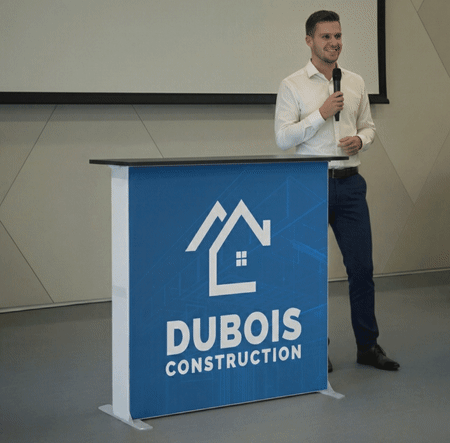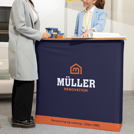 - Skil dig ud med pressevægge og roll-ups til bordet