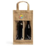Opgrader dine vingaver med denne vinpose i jute. Den har vindue og dobbeltrum og er perfekt til at transportere flasker med stil.