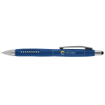 Giv kundern en påmindelse om dit brand med denne kuglepen med tryk, kromdetaljer og et behageligt gummibelagt greb. Inkluderer en indbygget skrivestift til touchscreen-enheder.