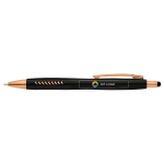 Opgrader dit brands synlighed med en styluskuglepen, der kombinerer elegant design med praktisk funktionalitet. Imponer kunderne under præsentationer ved at skifte mellem at skrive noter og navigere på touchskærme med et enkelt klik. Den er nem at tilpasse – tilføj dit logo, budskab eller info ved hjælp af vores intuitive studie. Har du brug for hjælp? Vores designeksperter er her for at hjælpe dig med at føre dine ideer ud i livet.