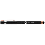 Opgradér din virksomheds synlighed med en stilfuld gelkuglepen med elegante rødguldfarvede detaljer og et behageligt gummigreb. Imponer kunder og kolleger med letglidende skrift og touchscreen-funktionalitet i ét praktisk værktøj. Den er nem at tilpasse – tilføj dit logo, budskab eller info ved hjælp af vores intuitive studie. Har du brug for hjælp? Vores designeksperter er her for at hjælpe dig med at føre dine ideer ud i livet.