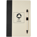 Du får et unikt skrivesæt, der kombinerer funktionalitet med et strejf af bæredygtighed. Dette sæt indeholder en A5-notesbog og en matchende kuglepen, begge fremstillet af genanvendte materialer. Ideelt til at dokumentere idéer, skrive dagbog eller tage noter. Det er nemt at tilpasse – tilføj dit logo, budskab eller info ved hjælp af vores intuitive studie. Har du brug for hjælp? Vores designeksperter er her for at hjælpe dig med at føre dine ideer ud i livet.