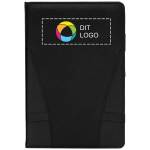 Hold styr på dine ting, når du er på farten, med denne notesbog, der holder din smartphone, øretelefoner og skriveværktøjer samlet ét sted. Brug den under møder til at tage noter, mens dine digitale enheder er let tilgængelige og sikre. Den er nem at tilpasse – tilføj dit logo, budskab eller info ved hjælp af vores intuitive studie. Har du brug for hjælp? Vores designeksperter er her for at hjælpe dig med at føre dine ideer ud i livet.