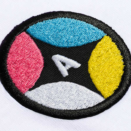 - Broderi: Dit design bliver syet på stoffet med farvede tråde.