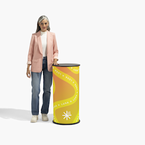 Du finder smarte detaljer ved hvert trin. Hver runde disk har en PVC-fri plastramme med en robust sort træplade. Det grafiske panel går hele vejen rundt om forsiden og kan trykkes med dine egne logoer, brandfarver, produktbilleder, tilbud eller QR-koder – upload dine illustrationer, eller tilpas en skabelon. Har du brug for at ændre dit budskab til dit næste event? Bestil bare et udskiftningspanel, og sæt det i. Hver disk kan nemt pakkes sammen i sin egen transporttaske, så den er nem at transportere. "Snap-and-go"-montering betyder ingen værktøj eller stress.