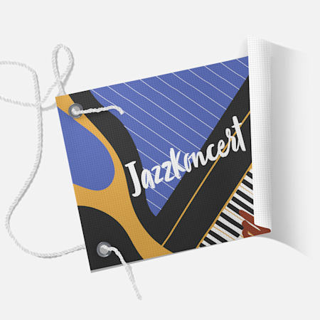 Snøreringe på 1,27 cm medfølger på mesh-banner og kan føjes til vinyl, pvc-fri og stofbannere. De er ikke nødvendige på roll-up-bannere. Snøreringene har 60 cm afstand øverst og nederst på banneret.