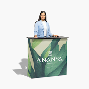 Vil du vise dit brand eller dine produkter frem til forskellige arrangementer? På få minutter kan du samle en disk, der fortæller forbipasserende mere om din virksomhed. Med en foldbar aluminiumsramme og en indvendig hylde til hurtig opbevaring er denne transportable messedisk helt uundværlig til events. Uanset om du skal til messe, åbne en pop-op-butik, deltage i en konference eller gerne vil promovere nye produkter, er vores transportable disk let, alsidig og enkel at samle.Vælg dit eget look