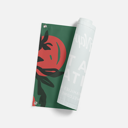 Sæt bannere og gadeskilte, som er nemme at flytte, op lige udenfor din butik for at tiltrække forbipasserende. Vandafvisende letvægtsflag viser folk vejen til dit event eller din terrasse, hvor du kan byde dem velkommen med vinylbannere, der er svære at overse. Skab et særligt rum til en udendørs messe eller et marked med et farverigt meshbanner eller vejrbestandige udendørs plakater, der skiller sig ud i mængden.
