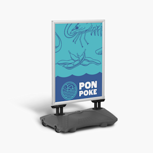 Du modtager altid 2 udendørs plakater, uanset hvilken pakke med fortovsskilte du bestiller. Hvis du foretrækker kun at bestille en enkelt plakat til dit waterbase-skilt, kan du bestille en A1 outdoor-plakat for sig selv.