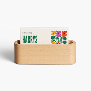 Disse alsidige holdere af træ er små og lette, men kan indeholde op til 45 visitkort i standardstørrelse. Derfor kan de både bruges som fast inventar på dit skrivebord, på en messebod eller endda som en del af dit flytbare setup.